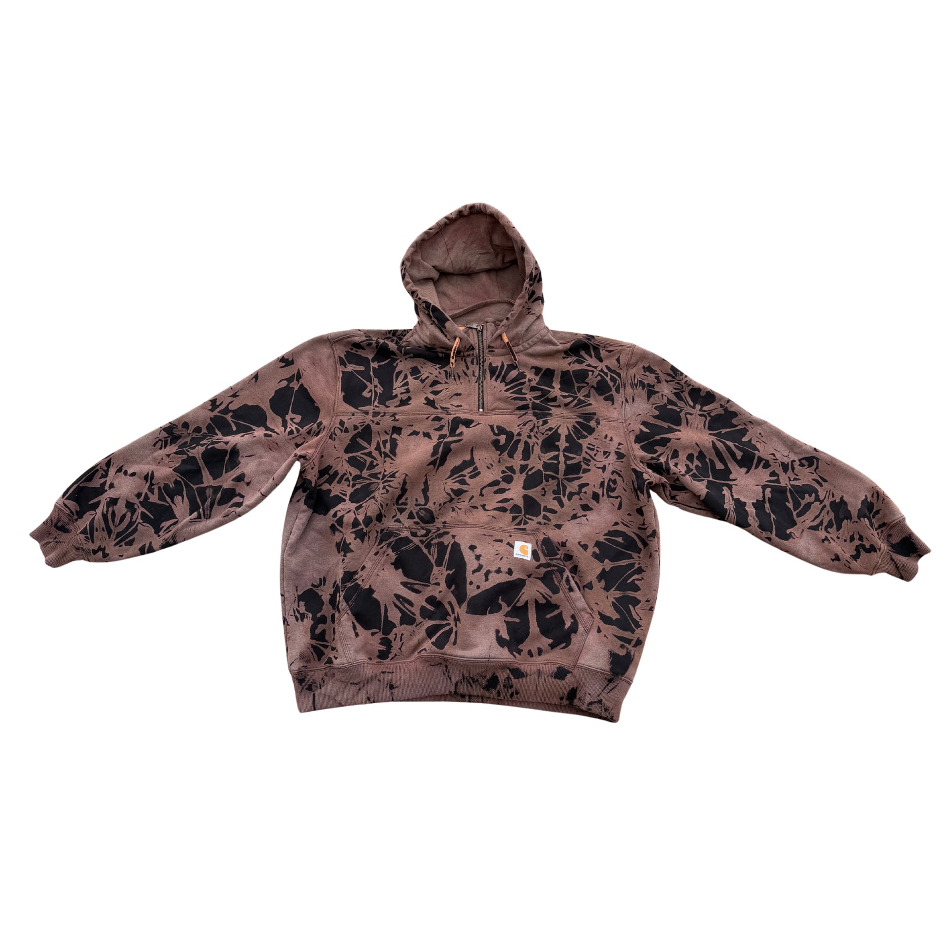 π₯ One-of-a-Kind Bleach Tie-Dye Hoodie β This authentic Carhartt Rain Defender Quarter-Zip Hoodie in deep Black has been transformed by hand into a bold, one-of-one piece. Each hoodie is uniquely bleached to create its own pattern β no two ever look the same. Every swirl and fade gives this heavyweight hoodie its own identity.